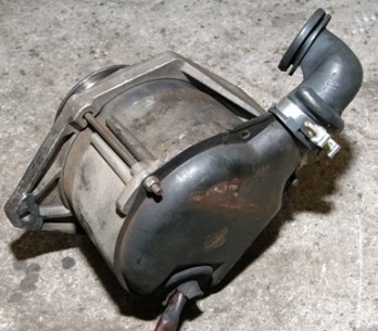 55Ampモデル(AL-75)に装着した画像です。 55Ampオルタネーターは、 本体後ろに冷却ダクトが付きます。 (70Amp(AL-108)にはダクトが無く、オルタネーター本体に丸穴が装備されます。) ファンハウジング側に装着した画像です。