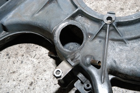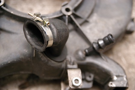 55Ampモデル(AL-75)に装着した画像です。 55Ampオルタネーターは、 本体後ろに冷却ダクトが付きます。 (70Amp(AL-108)にはダクトが無く、オルタネーター本体に丸穴が装備されます。) ファンハウジング側に装着した画像です。