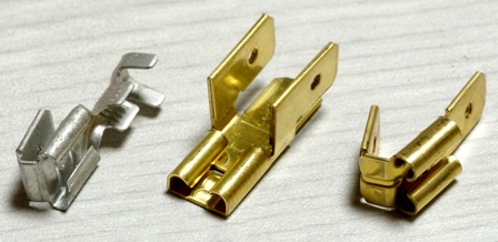 ヨーロッパ車に最適なターミナルです。 ターミナルのメス側、中央には丸い凸、 ターミナルオスの中央には○穴がありますので、 抜けない様にできています。 国産品でもOKですが、ソケットに入れて使用する場合を除き、 返しが無いタイプで、丸い凸付きをお奨めします。 下記のターミナルは、特に表記をしていない場合、 差込部分のサイズは6.3mmのスタンダードです。 画像左より。