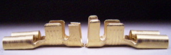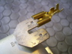 ![]() 注)ドイツのターミナル規格?か、 足が長くて上手くかしめられない場合、 被覆側の足を少しニッパー等で、 短くしてあげると比較的上手くいきますよ。 写真右がオリジナルの状態、 写真左が少し短く詰めた後のターミナルです。 |